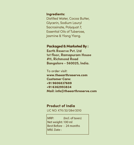The Tuberose & Ylang Ylang Shower Gel is a union of pure essential oils of Tuberose, Ylang Ylang and Jasmine. As natural as it can get, and free of added chemicals, it is gentle and mild on the skin and is suitable for everyday use, being handcrafted for skin vitality and improvement.