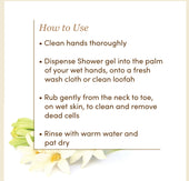 This shower gel has plant-based surfactant. It produces mild lather, as no lathering agents or synthetic detergents have been added for foam creation.