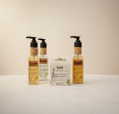 This Lavender & Turmeric collection is packaged in thick glass bottles to prevent plastic and toxins from leaching into the product and to reduce the plastic burden on the environment.