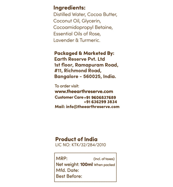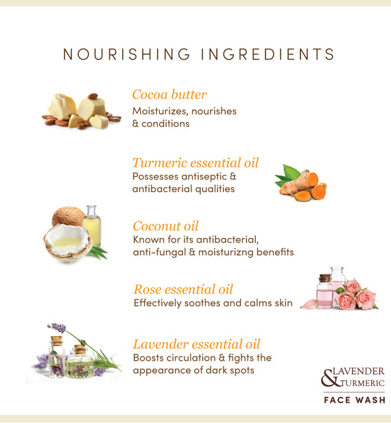 This Facewash is crafted with an indulgent blend of naturally sourced ingredients infused with the fragrance of lavender and rose essential oils will leave your skin replenished. The ever-healing qualities of turmeric elevate the experience.