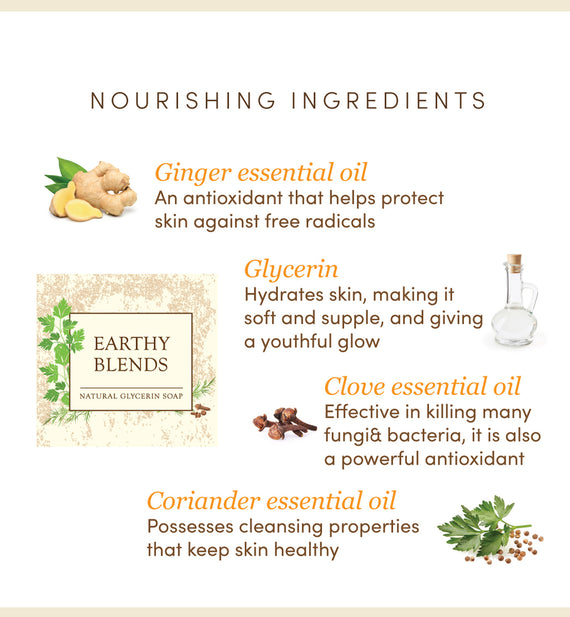 Crafted with natural ingredients – essential oils extracted from ginger, clove and coriander, natural cocoa butter and glycerin. It does not contain any chemical additives like colour, fragrance or preservatives.