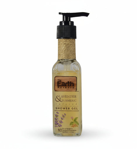The divine goodness of turmeric, lavender and rose essential oils come together in this body wash. With the antibacterial and antiseptic qualities of turmeric, and soothing qualities of lavender, the body wash heals and replenishes skin. Enriched with cocoa butter and glycerin, it deeply moisturises and nourishes your skin.With a mild lather, it plays it nourishing role on the skin, while leaving a lingering floral scent. Handmade with utmost care, the shower gel is perfectly balanced to bring out the innate qualities of each of the ingredients.