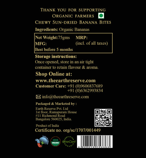 Sundried Banana is packed with vitamins, making this snack wholesome and nutritious. It is free from added sugars and sweeteners, and is gluten free. The bananas are sourced from Organic Farms in Uttara Kannada, Karnataka. A wholesome snack, this can be given to toddlers as well.