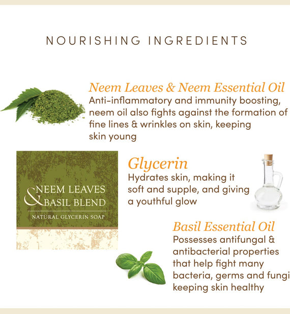 Artisanal homemade soap crafted from neem and basil. Rooted in the age-old knowledge of the ayurvedic qualities of the two plants, this fragrant soap which is one of our bestsellers, is completely natural, free from additives and synthetic enhancers.