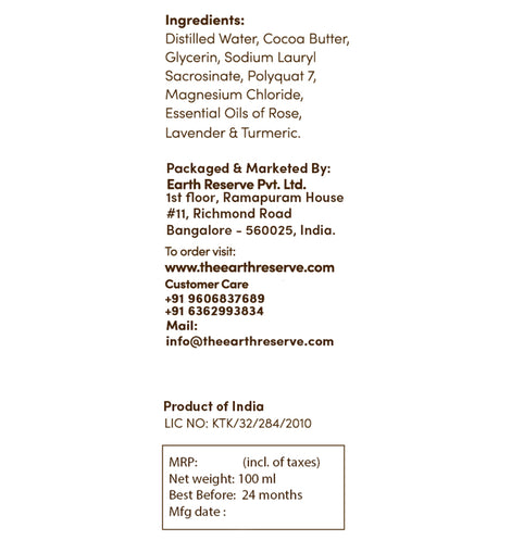 Pure essential oils of lavender and rose in this shampoo blend to give a relaxing and calming fragrance that helps de-stress and a relax. Gentle on the hair and scalp, this mild, non corrosive formula can be used everyday. This Lavender and Turmeric Shampoo is rooted in the age-old qualities of the naturally derived ingredients. Blended with them is the soothing fragrance of rose.