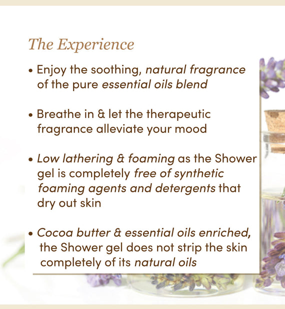 This shower gel has plant-based surfactant. It produces mild lather, as no lathering agents or synthetic detergents have been added for foam creation.