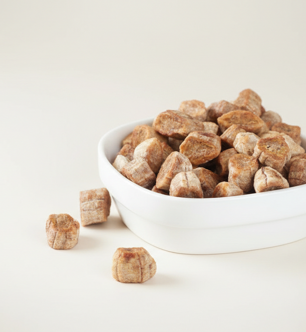 When stored properly, dried banana bites have a shelf life of eight months at room temperature, without any preservatives or chemicals.
